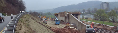 Absteckung eines Brückenbauwerkes in Betonierlage, anschließende Absteckung der Verschubbahn und endgültige Absteckung des Bauwerkes in Endlage.